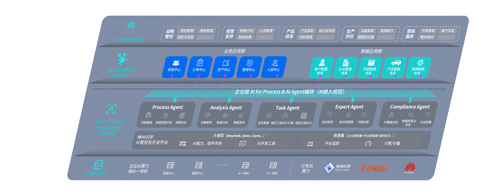 安币问学智车解决方案是一套基于AI技术的汽车行业智能化系统,,,,覆盖从底层算力到顶层AI应用的全栈方案。。方案由算力层、、、、模型层和应用层组成:算力层,,,,方案支持多种一体机配置,,具备云端灵活部署、、多云适配以及动态优化计算资源的能力;模型层,,,安币问学平台版提供了企业级AI应用一站式构建与管理平台,,支持基于后训练强化技术的汽车企业专属模型的训练、、、评测和运营;应用层,,安币问学DeepSeek版提供包括超级员工、、、智能招采、、智能营销、、智能客服、、、AI for BI等一系列解决方案,,,可助力汽车行业实现数字化转型,,,,让管理更智能、、响应更敏捷。。